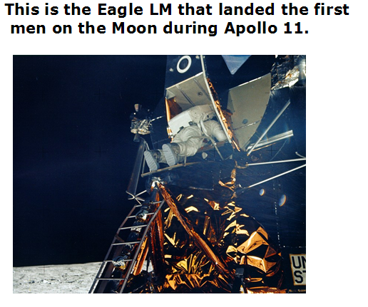 Apollo missions 11 through 17 were Eagle missions. The Eagle was the lunar module that allowed the astronauts to land on the surface of the moon. Without The Eagle, The United States may not have won the race to the moon. The most important Eage mission was Apollo 11, the first time it landed on the moon. According to NASA, at 1:47 pm EDT, July 20, the Lunar Module "Eagle" carrying Neil Armstrong and Edwin Aldrin, separated from the Command Module "Columbia". Michael Collins, aboard the CM, took this picture of the LM as it prepared for its descent to the lunar surface. "You cats take it easy on the lunar surface", Collins said as he released the LM.